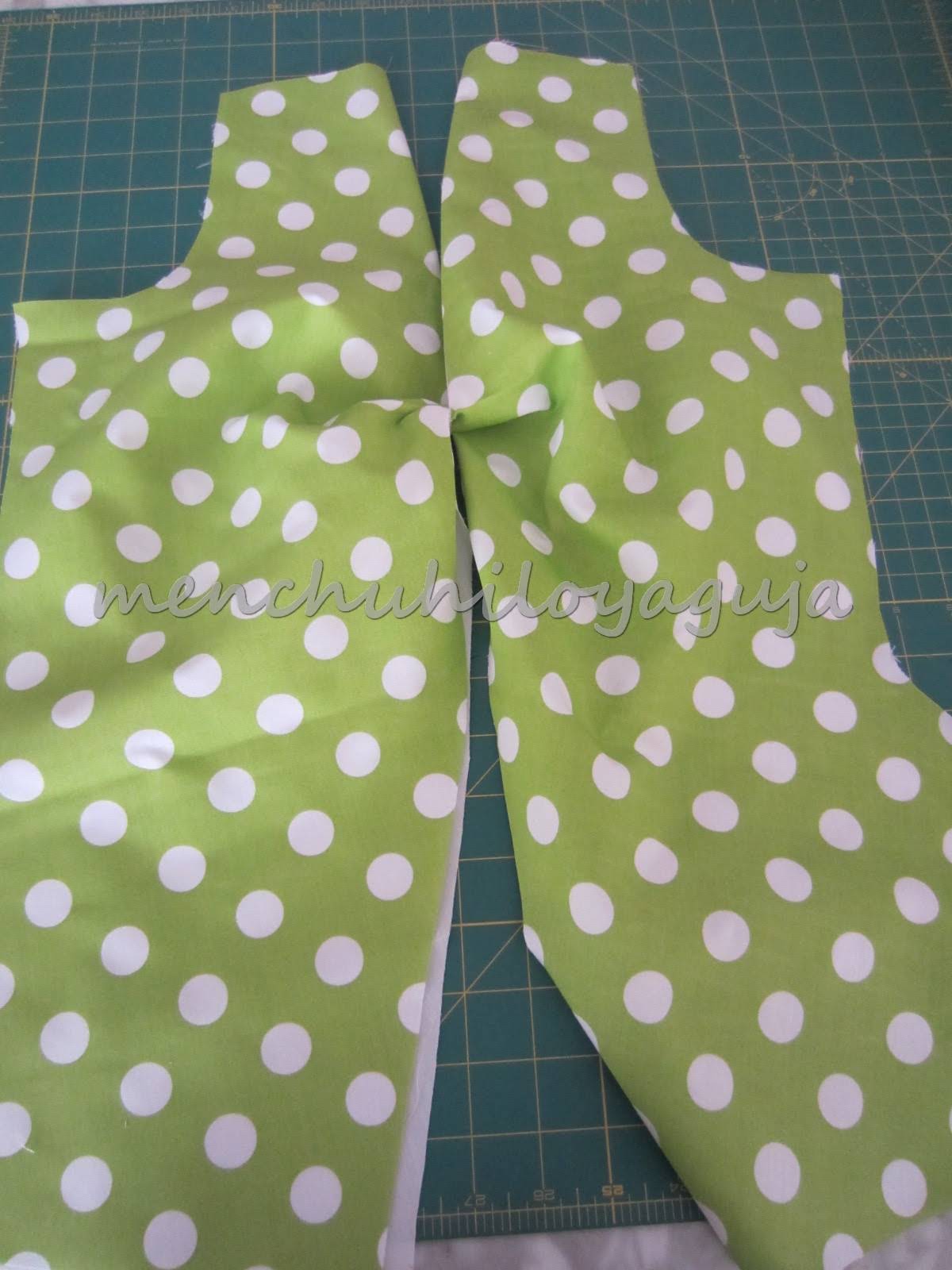 📍 En la tela de forro puesta doble, pon el patrón de esta forma. Deja el margen de costura que suelas poner.
